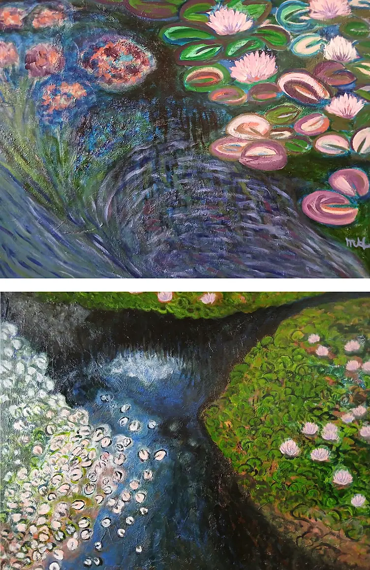 クロード・モネの睡蓮の花の絵に、追いつけ、追い越せの勢いで挑戦します。