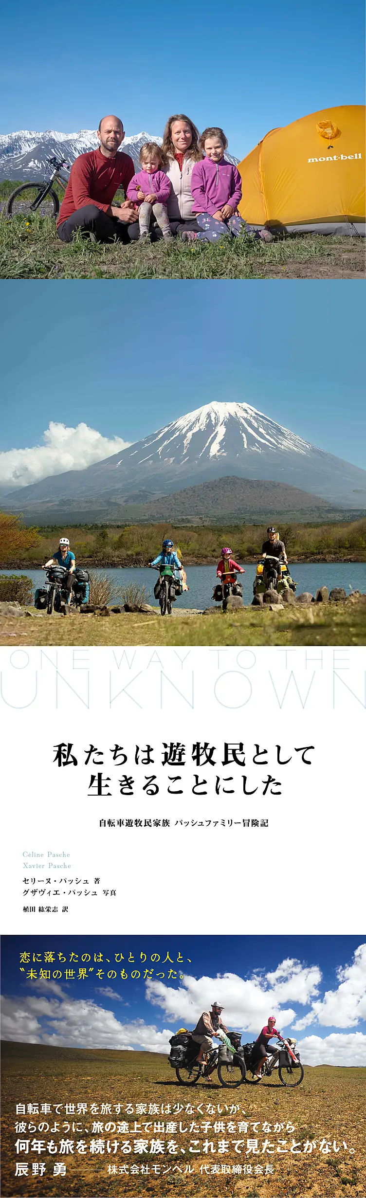 2010年から自転車で世界中をめぐる旅を始めたスイス人のグザヴィエ&セリーヌ夫妻。2010年から2015年までは“Swiss Alps to Southern Alps”と題し、生まれ故郷スイスからニュージーランドまでを自転車で走破。その途中、2013年にマレーシアで娘のナイラちゃんが誕生。2015年にニュージーランド到着後、いったんスイスに帰国し、2016年の夏から、“The Great Northern Horizon”を北海道からスタート。2017年8月には、2人目の娘、フィビーちゃんがマレーシアで誕生。彼女たちは、両親とともに旅をしながら、訪れた各国の文化を肌で感じ、たくましく成長しています。パッシュ ファミリーは、世界中で自らの経験について講演活動をしながら、家族で旅を続けています。