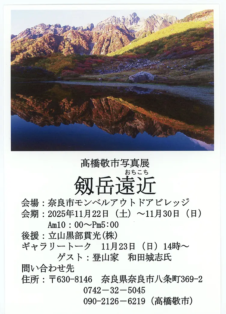 写真家の高橋敬市氏が、これまで撮りためた剱岳の作品をまとめた『剱岳遠近(おちこち)』を出版しました。その出版を記念して写真展を開催します。