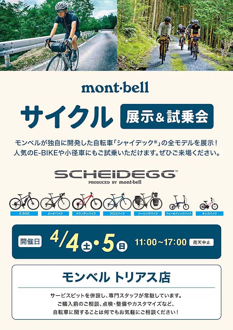 モンベルが独自に開発した自転車「シャイデック®」の展示・試乗会を開催します!