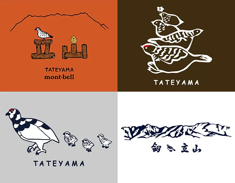 立山のロゴに雷鳥の親子が乗っているデザインです。