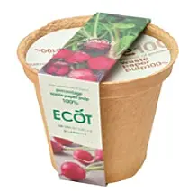 からだと環境にやさしいハーブや野菜を、古紙率100%の国産リサイクルポットで育てるキット。ポットは使用後に、そのまま土に埋めておくと、年月をかけて生分解し、土に還ります。