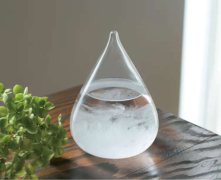 天気によって結晶の形が変化する仕組みです。日によって違う表情を楽しめるインテリアとして。