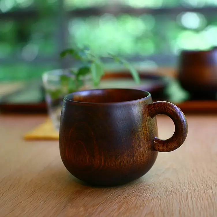 なめらかな木肌に波紋のようにまあるく広がる木目、あたたかな手触り、そして優しく愛らしい形にこだわって作られたマグカップです。